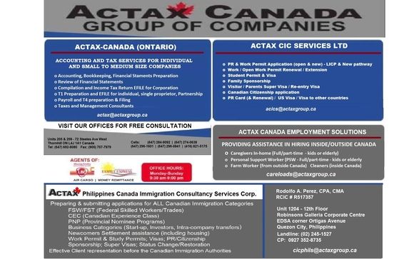 Accounting Tax Immigration Consultancy By Actax Canada Ontario In Thornhill On Alignable